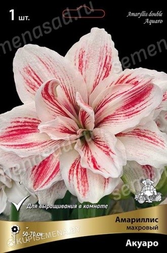 Амариллис махровый Акуаро - истинный шедевр среди цветов, завораживающий своей уникальной красотой и элегантностью. Растение высотой 50-70 см. Луковица выпускает 1-2 цветочные стрелки, на каждой из которых красуется от 2 до 4 роскошных цветков. Махровый цветок достигает диаметра до 18-20 сантиметров, раскрашивая пространство нежнейшими оттенками зелёного и белого, разбавленными изысканными бордовыми штрихами. Лепестки цветка словно созданы художником-акварелистом, чьи кисти нежно касались поверхности полотна, создавая волшебную игру света и тени. Эта особая комбинация красок создаёт ощущение гармонии и утончённости, притягивающее взгляд и вдохновляющее созерцателей. «Акваро» отличается удивительной способностью меняться: изначально цветки имеют лёгкий кремовый оттенок, но вскоре раскрываются ярким снежно-белым сиянием, украшенным живописными розово-малиновыми штрихами. Сорт обладает особенным шармом, благодаря множеству волнистых, слегка загнутых лепестков, придающих каждому цветку объём и выразительность. Сорт идеально подходит для выращивания в горшках, станет отличным украшением любого интерьера и создаст атмосферу уюта и гармонии, привнося в дом радость и вдохновение.