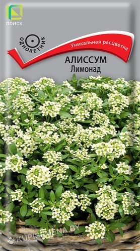 Уникальная расцветка! Миниатюрное растение с мелкими цветками с медовым запахом. Растение невысокое, до 5-10 см. Образует плотный, стелющийся ковёр кремового цвета. Листья узкие, ланцетные. Цветет с июня до осени. Для непрерывного цветения периодически удаляют увядшие цветы и плоды (если не нужны семена). Используют для обрамления клумб, балконных ящиков, на каменистых горках, рокариях, для посадки между плитками дорожек.