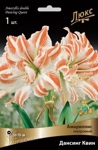 Амариллис махровый Дансинг Квин — настоящее чудо природы, способное преобразить любое пространство. Цветки махровые, крупные, диаметром около 20 см. Белоснежные бутоны украшены яркими оранжево-алыми продольными полосами, лепестки с загнутыми кончиками. Высота растения 50-70 см. На цветоносе образуется 2-4 цветка. Амариллис отлично подходит для выращивания в кашпо в качестве комнатной культуры. Сорт Дансинг Квин привлекает взгляд, оживляет интерьер и создает уникальную атмосферу праздника каждый день!