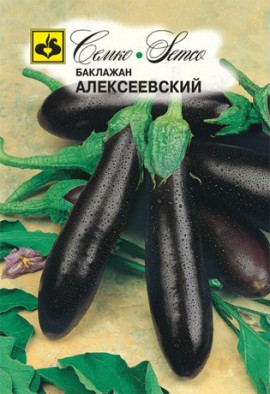 Баклажан Алексеевский - ранний сорт баклажана для открытого грунта и неотапливаемых теплиц. От всходов до созревания 95–100 дней. Растение полураскидистое, стебель короткий до среднего, без антоциановой окраски, со слабым опущением. Лист средний, зеленый, выемчатый. Баклажаны цилиндрической формы, красивой темно-фиолетовой окраски, сильноглянцевые, гладкие, длиной 15–18 см, диаметром 4–6 см, массой 100–190 г. Рекомендуется убирать плоды массой не более 190 г, при большей массе и при переходе в биологическую спелость плоды светлеют. Шипы на чашечке отсутствуют или очень редкие. Мякоть белая, без горечи. Обладает уникальными вкусовыми качествами. Содержание сухого вещества 7,7%. Сорт отличается высокой товарностью плодов и транспортабельностью. Толерантен к вертициллезному увяданию и сухой гнили плодов. Используется для всех видов промышленной переработки и домашней кулинарии. Схема посадки 70х30 см. Урожайность 6–8 кг/м2.