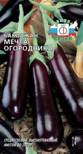 Раннеспелый (от всходов до сбора урожая 95-105 дней) сорт для открытого грунта и пленочных укрытий. Растение сильнорослое, высотой 60-80 см. Плоды выравненные, цилиндрические, тёмно-фиолетовые, гладкие, глянцевые, массой 150-200 г, с белой плотной мякотью, без горечи, великолепного вкуса. Урожайность 5,7 кг/м2. Ценность сорта: устойчивость к антракнозу и фитофторозу, высокопродуктивный, прекрасно хранится, подходит для длительной транспортировки. Рекомендуется для использования в домашней кулинарии, консервировании и переработки.