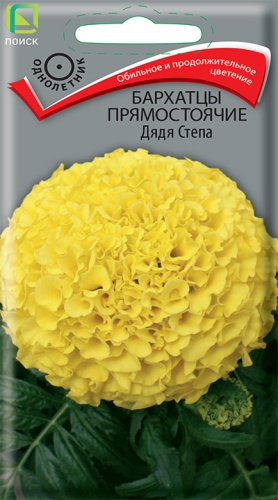 Обильное и продолжительное цветение. Растение высотой до 90 см. Цветки собраны в крупные, махровые и шарообразные соцветия-корзинки, диаметром до 10 см, светло-желтой окраски. Цветет с июня до заморозков. Чтобы продлить цветение, необходимо удалять увядшие цветки. Используют для клумб, рабаток, высоких групп и срезки.