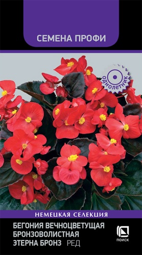 Компактный куст с бронзовой листвой. Растение шаровидной формы высотой 20-25 см. Цветы простые многочисленные насыщенного красного цвета. Листья бронзово-коричневые, мясистые, блестящие, округло-сердцевидные. Цветение обильное и продолжительное. Используют в ландшафтном дизайне для посадки на клумбы и цветники, как контейнерное растение.