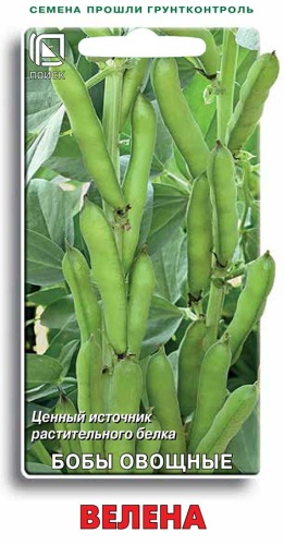 Боб сахарный, без пергаментного слоя, длиной 10-12 см, шириной 2 см, слегка изогнутый, тупоконечный, 3-4-семяный.