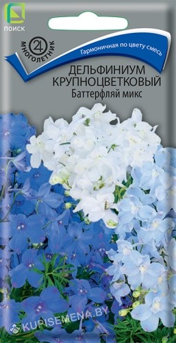 Гармоничная смесь из нежных «цветов-бабочек»! Высота растения около 40 см, стебли прямые, опушенные. Листья на длинных черешках, пальчато-рассеченные, сверху зеленые, снизу беловатые. Цветы белые, голубые, синие, розовые собраны в редкую кисть на конце стебля. Цветет июль-август. Используют для создания смешанных групп, рабаток, в миксбордерах и на срезку.