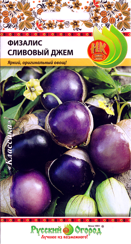 "Сливовый Джем" - это необычный декоративный сорт физалиса, имеющий плоды насыщенного пурпурного цвета, которые скрыты в ярко-зелёной оболочке. Чтобы плоды физалиса приобрели яркий, насыщенный цвет, их необходимо расположить под ярким солнечным светом.
