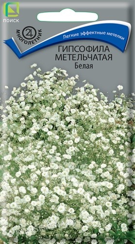 Лёгкие эффектные метёлки на тонких стебельках. Растение высотой 100-110 см. Листья узкие, серовато-зелёные. Цветки белые, мелкие, махровые образуют пышное облако. Цветение обильное и продолжительное (июль-август). Используют для бордюров, каменистых горок, а также для цветочных аранжировок летних и зимних букетов.
