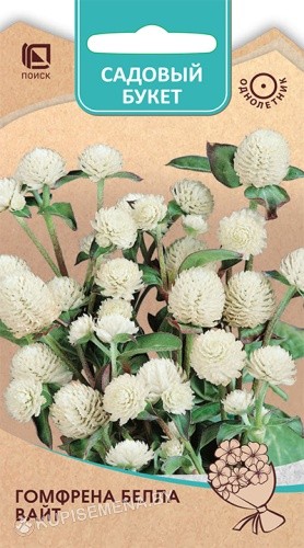 Элегантный зимний букет. Растение прямостоячее, хорошо ветвящееся, высотой 40-50 см. Формирует многочисленные цветоносы и привлекательные шаровидные соцветия. Окраска белая. Цветёт с июля по октябрь. Соцветия хорошо сохраняют окраску и форму после высыхания. Прочные цветоносы отлично стоят в срезке и зимних букетах, растение также великолепно смотрится в бордюрах и цветниках.