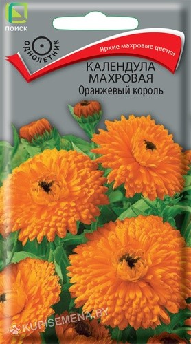 Яркие крупные цветки. Куст густоветвистый, высотой до 60 см. Соцветия махровые, 7-8 см в диаметре, плотные, черепитчатые, ярко-оранжевые с темным центром. Обильно цветет в июле-сентябре. Используют для клумб, рабаток, бордюров и срезки.