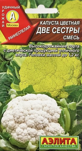 В миксе присутствуют два скороспелых сорта – «Сноуболл 123» с головкой привычного белого цвета и «Универсал» - нежно-салатового оттенка. Растения сильнорослые, с плотными округло-плоскими головками массой 1,5 кг. Оба сорта характеризуются стабильно высокой урожайностью, отличными вкусовыми качествами, высоким выходом товарной продукции и способностью противостоять погодным стрессам. Хорошо удаются как в открытом грунте, так и в теплицах. Рекомендуются для летнего и осеннего потребления в свежем виде, для замораживания и других видов консервирования. Общеизвестно, что цветная капуста по содержанию белка, витамина С и фосфора превосходит капусту белокочанную. Она низкокалорийна, содержит тартроновую кислоту, препятствующую трансформации сахаров в жировые отложения. В ее составе присутствуют специфические соединения – индолы, которые являются онкопротекторами, препятствующими появлению опухолей. Этот диетический овощ исключительно полезен диабетикам, «сердечникам», детям и всем сторонникам здорового образа жизни.