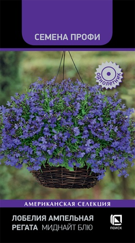Ранняя серия ампельной лобелии! Растение образует изящный каскад с множеством миниатюрных цветков. Стебли сначала растут вверх, а затем ниспадают. Высота растения 15-20 см. Длина побегов 25-30 см. Окраска сине-фиолетовая. Великолепно подходит для подвесных корзин, кашпо, балконных ящиков.