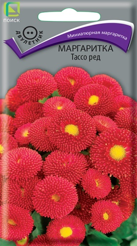 Миниатюрные маргаритки изумительной красоты высотой до 12 см. Компактное растение с коротким сильным стеблем. Многочисленные крупные красные соцветия с плотными трубчатыми лепестками, диаметром до 4 см. Универсальное использование: как почво-покровное растение, для обрамления клумб, балконных ящиков, альпинариев.