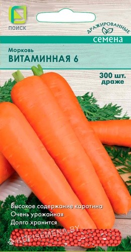 Самый вкусный сорт с высоким содержанием каротина. Среднеспелый. Сортотип Берликум-Нантская. Период от всходов до уборки урожая 80-100 дней. Корнеплод цилиндрический, тупоконечный, почти полностью погружен в почву. Длина более 15 см, масса 100-164 г. Поверхность гладкая с мелкими глазками. Окраска красно-оранжевая. Сердцевина маленькая круглая. Вкусовые качества высокие. Сорт устойчив к цветушности. Лежкость хорошая. Оригинальная научная разработка - бысторастворимое драже с микроэлементами и стимуляторами роста. В сочетании со специальными приемами обработки семян обеспечивает высокую всхожесть и силу роста. Внимание! Хранить в сухом месте.