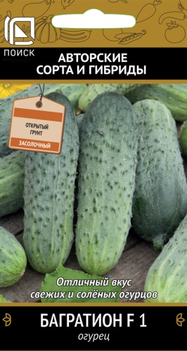 Высочайшее качество зеленцов как свежих, так и соленых. Пчелоопыляемый гибрид для выращивания в пленочных теплицах и в открытом грунте. Период от всходов до плодоношения 50-55 дней. Гибрид преимущественно женского типа цветения имеет небольшое количество мужских цветков. Плоды длиной 12-15 см, диаметр 3-4 см, масса 100-120 г, зеленые с полосами, крупнобугорчатые, опушение черное. Прекрасно подходят для засолки и маринования. Устойчив к вирусу огуречной мозаики, оливковой пятнистости и толерантен к мучнистой росе.