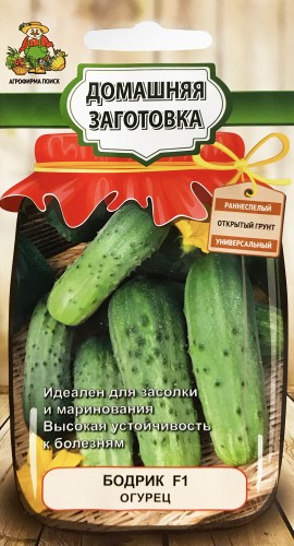 Пчелоопыляемый раннеспелый гибрид для выращивания в открытом грунте. Период от полных всходов до первого сбора урожая 42-45 дней. Гибрид преимущественно женского типа цветения. Плоды длиной 10-11 см, диаметром 3-4,5 см, массой 90-100 г, зеленые с полосами средней длины, крупнобугорчатые, белошипые. Гибрид устойчив к мучнистой росе, пероноспорозу, фузариозу и высоким температурам. Прекрасно подходит для засолки и маринования.
