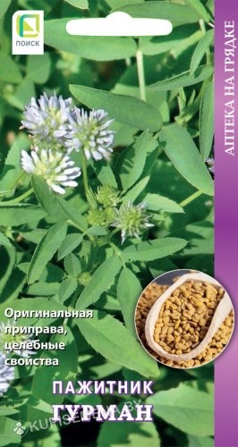 Однолетнее растение, высотой 40-50 см. Период от всходов до начала цветения 20-25 дней, до созревания семян 65-70 дней. Молодые побеги и листья используются в сушеном виде в салатах. Плоды собирают, высушивают, измельчают, и только затем используют в качестве приправы в кулинарии,это оттеняет вкус более острых приправ и придает мясным блюдам необычайный нежный аромат. Все части растения, в том числе и семена, оказывают профилактическое действие на сердце и сосуды, способствует очищению организма от токсинов и шлаков, актуален в борьбе с различными болезнями верхних дыхательных путей, центральной нервной системы, зубных болей, анемии, неврастении, подагры, астении и половых расстройств. Семена пажитника используются в косметологии для красоты кожи лица и волос. Не требователен к условиям выращивания.