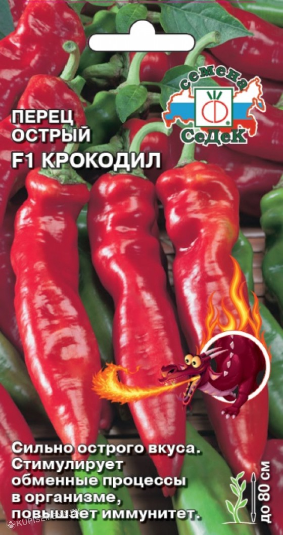 Среднеранний (110-120 дней) гибрид для открытого грунта и пленочных укрытий. Растение полураскидистое, хорошо облиственное, высотой до 80 см. Плоды пониклые, конусовидно-призмовидные, слегка сморщенные, длиной 20-22 см, в технической спелости светло-зеленые, в биологической – темно-красные, глянцевые, массой 130-150г. Толщина стенки 4-5мм. Вкус сильно острый. Аромат яркий перечный. Урожайность 6,0-7,0 кг/м2. Ценность гибрида: устойчивость к вирусу табачной мозаики, стрессоустойчивость, интенсивное и обильное плодоношение, крупноплодность. Обладая обезболивающими, противовоспалительными, местными разогревающими, бактерицидными и антиоксидантными свойствами, стимулирует обменные процессы в организме, повышает иммунитет, улучшает аппетит и активизирует пищеварение. Рекомендуется для употребления в свежем виде, консервирования, приготовления острых приправ и соусов.