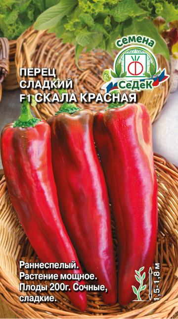 Раннеспелый (110-115 дней) гибрид для открытого и защищенного грунта. Растение мощное, хорошо облиственное, высотой до 1,5-1,8 м. Плоды пониклые, необычной формы, удлиненно-конические, гладкие, глянцевые, в технической спелости темно-зеленые, в биологической – ярко-красные, длиной до 20 см, массой до 200 г, сочные, с ярким перечным ароматом и сладким вкусом. Толщина стенки 5-6 мм. Урожайность 8,5-10,0 кг/м². Ценность гибрида: устойчивость к основным заболеваниям перца, к растрескиванию плодов, стабильно высокий урожай в различных климатических условиях, оригинальная форма плодов, хранение плодов до 1 месяца. Плоды пригодны для употребления в любой стадии зрелости. Рекомендуется для употребления в свежем виде, консервирования и кулинарной переработки. Отлично подходят для приготовления на гриле.