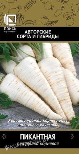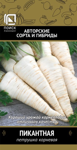Скороспелая корневая петрушка с отличными вкусовыми качествами корнеплода, период от полных всходов до технической спелости 95-105 дней. Корнеплод конический, остроконечный, длинной 20-30 см, диаметром 3,5-6 см. Окраска поверхности беловато-серая, сердцевина белая. Масса корнеплода 45-60 г. Розетка листьев раскидистая.Петрушка предпочитает рыхлую, плодородную, нейтральную или немного кислую почву. Успешно растет как на солнечных, так и на легко затененных местах. Петрушка, особенно листовая, отзывчива на поливы. Корневая петрушка нуждается в поливах, в основном, в конце августа – в период налива корнеплодов. Холодостойкий, хорошо зимует.Урожайность зелени 1,4-2,2 кг/м2, корнеплодов 1,8-3,1 кг/м2.Пряная культура, богатая витаминами и минеральными солями. Ароматичность зелени хорошая.Универсальное использование.