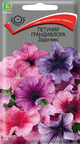 Смесь жилкованных окрасок. Растение высотой 20-30 см. Хорошо ветвящееся от основания. Цветки крупные диаметром 8-10 см. Цветение обильное и продолжительное. Прекрасно подходит для клумб, рабаток.