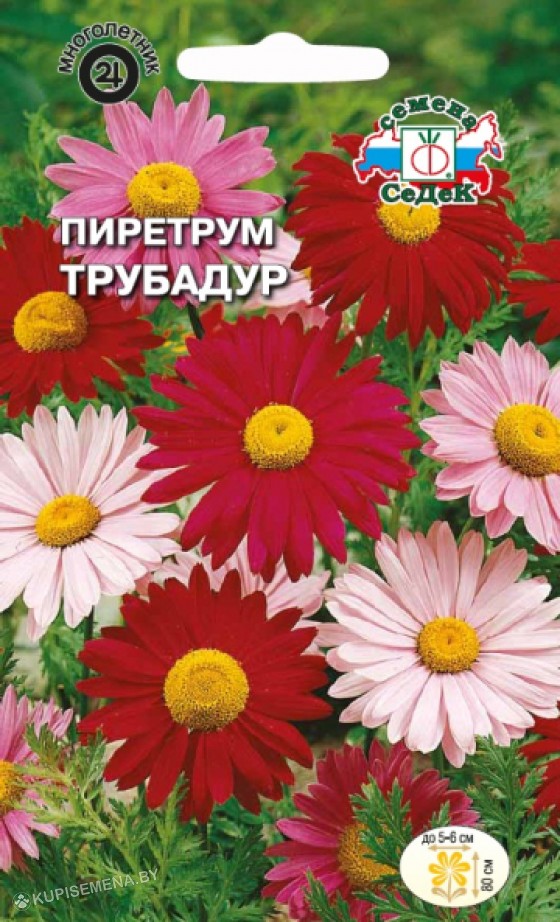 Эффектное травянистое кустистое растение с перисто ажурной листвой и крупными ромашковидными соцветиями до 5-6 см в диаметре, красной, розовой, белой окраски. Зимостоек, предпочитает легкую рыхлую почву и открытые солнечные места, выносит полутень. Используется для оформления цветников, одиночных и групповых посадок на газоне. В срезке долго сохраняет свежесть и декоративность. Зацветает на второй год.