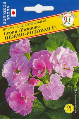 Красивые розоподобные (полностью махровые) цветы в ярких цветах. Серия "Розанна" - это очень специфическое дополнение к стандартному рынку примулы. Многолетнее растение высотой до 15 см. Высокая всхожесть. Красочное растение для контейнеров, вазонов, клумб, очень рекомендуется для внутренних двориков. Примулы теневыносливы, влаголюбивы и морозоустойчивы. Почвы для примул нужны рыхлые, хорошо дренированные, умеренно влажные. Каждый год под кусты подсыпают рыхлой земли. В сухую, жаркую погоду растения поливают. Подкармливают весной полным минеральным удобрением 2-3 раза, после отцветания - азотным или органическим удобрением. Высевают семена весной и до середины июля. Перед посевом рекомендуется семена стратифицировать. Семена равномерно распределяют по поверхности субстрата, предварительно хорошо увлажненному, и накрывают стеклом либо прозрачной пленкой. Для прорастания примул необходим свет и температура 15-18 градусов. При соблюдении этих условий всходы появляются на 10-14 день. При образовании первых настоящих листьев растения пикируют в отдельные горшочки или ящики, оставляя 10-12 см между растениями. Горшочки или ящики ставят в хорошо проветриваемое, прохладное место. Подросшие растения высаживают в грунт.