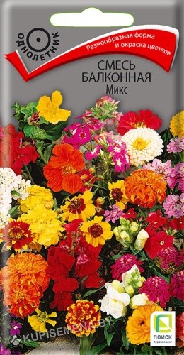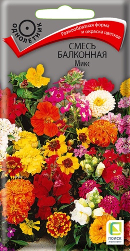 Интересная смесь однолетних растений для балконных ящиков и подвесных корзин. Растения высотой около 25 см, имеют разнообразную окраску и форму цветка, цветут с июня до сильных заморозков.