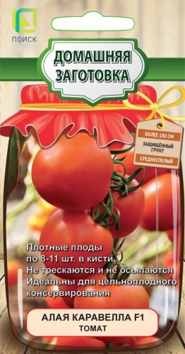 Кистевой. Индетерминантного типа, с укороченными междоузлиями. Среднеспелый (110 дней). Масса плода 130 г. Плоды выровнены по форме и размеру, округлые или слегка овальные, гладкие, плотные, вкусные. Окраска плода интенсивно оранжево- красная в биологической спелости, светло-зеленая без пятна – в технической. Плоды собраны в простую, двустороннюю, компактную кисть по 8-11 штук. Гибрид высокоурожайный, устойчив к перепадам температур, к ВТМ, кладоспориозу, фузариозному увяданию, к растрескивания и осыпанию.