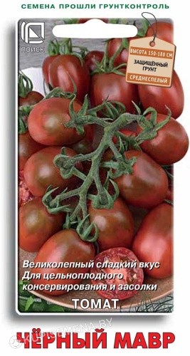 Среднеранний (100-108 дней) сорт для парников и теплиц. Растение полудетерминантного типа, высотой до 1-1,3 м. Требует пасынкования и подвязки. Образует 7-10 кистей с 7-10 плодами на каждой. Плоды сливовидные, бордово-шоколадные, массой 30-50 г, плотные, с толстой кожицей, очень сладкие. Ценность сорта: очень обильное плодоношение, высокие вкусовые качества. Рекомендуется для употребления в свежем виде и консервирования.