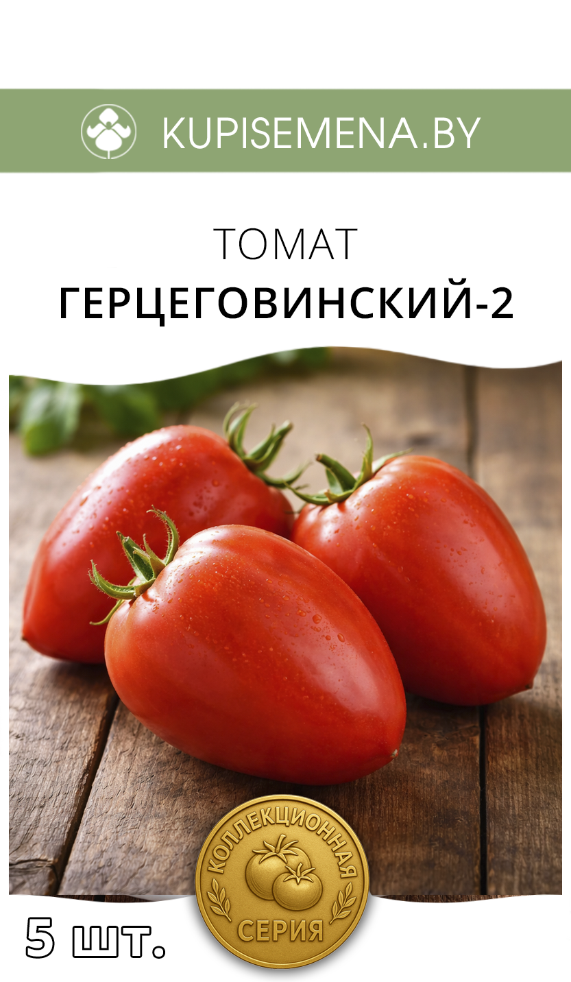 Томат Герцеговинский (Hercegovina/Hercegovac) — старинный высокорослый (1,5–1,8 м) среднеспелый сорт из Хорватии/Боснии. Отличается крупными (300–800 г, до 1 кг) плоскоокруглыми или сердцевидными красными плодами с мясистой, сочной мякотью и сладким вкусом. Требует подвязки, формируется в 1–2 стебля, отлично подходит для салатов и соков.