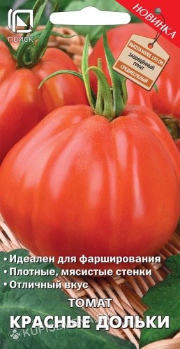 Вкусный, великолепен для нарезки и фарширования. Среднеспелый сорт для пленочных теплиц. Период от всходов до начала плодоношения 115-120 дней. Растение индетерминантное, более 170 см, нуждается в подвязке и формировании. В кисти 3-6 плодов. Плод оригинальной грушевидной формы с сильной ребристостью (дольчатый), красный с малиновым оттенком, массой 120-150 г.