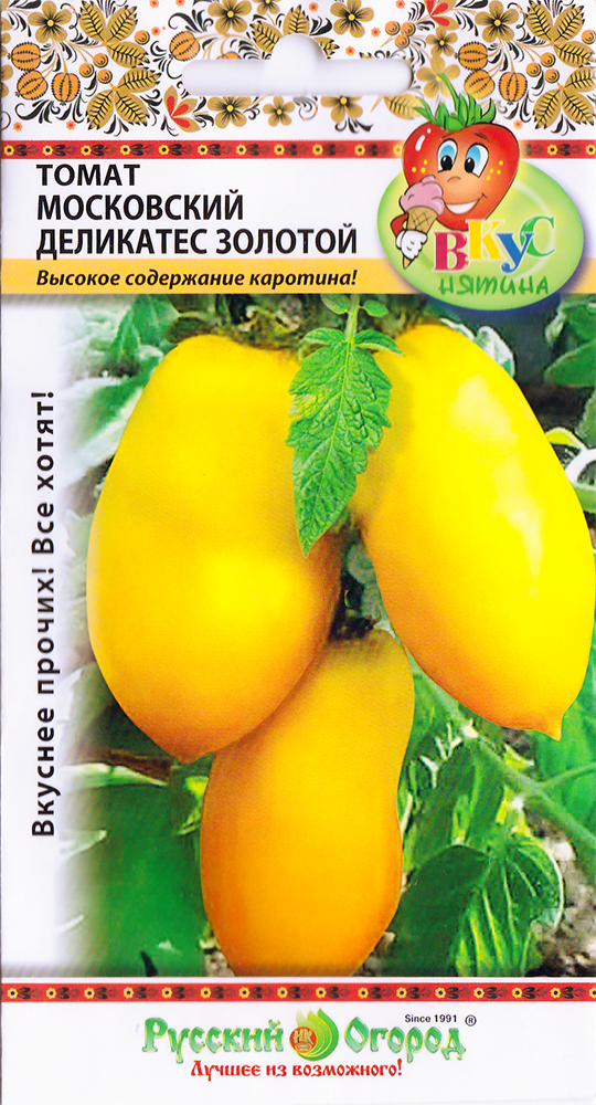 Плоды выравненные, цилиндрические с «носиком», ярко желто-оранжевые, массой до 90-120 г, с плотной, мясистой мякотью и повышенным содержанием бета-каротина.