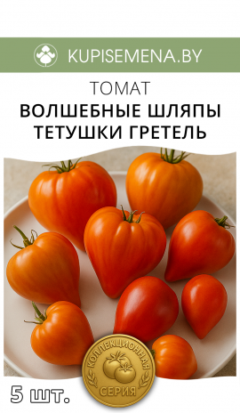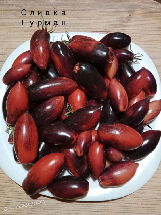 Индетерминантный высокорослый сорт (1,8-2 м) в теплице, в открытом грунте - около 1,5 м. Сорт раннеспелый, хорошо завязывает плоды даже в стрессовых условиях. Неприхотлив, устойчив к перепадам температур и основным болезням томатов. Кусты нуждаются в подвязке к опоре. Рекомендуется формировать в 2-3 стебля. Плоды очень красивые: удлинённые сливки с острым носиком розового цвета с фиолетово-чёрным напылением. Чем больше солнца получает растение, тем больше антоциана содержится в плодах. Вес томатов 50–80 г. Сливки плотные, долго висят на кусте, не осыпаясь. Хорошо хранятся и не портятся. Вкус сладкий, сочный, очень приятный. Назначение универсальное. Плодоносит до самых заморозков. Кирпично-красная версия известного сорта (расщепление). Срок созревания составляет 110-120 дней Плоды формируются кистями по 5-6 штук. Их окраска привлекает внимание: снаружи они оранжево-красно-бронзовые, с тёмным антоцианом на плечиках, а внутри - красная мякоть. Кожица плотная и гладкая. Мякоть сладкая и обладает насыщенным ароматом. Вкус сравнивают с карамелью, он отличается отличным балансом кислоты и сладости. Этот сорт можно выращивать как в теплице, так и в открытом грунте. В теплице урожайность будет заметно выше. Кожица помидоров не склонна к растрескиванию. Для успешного выращивания этому сорту необходимо много солнца, как и всем томатам с антоцианом.