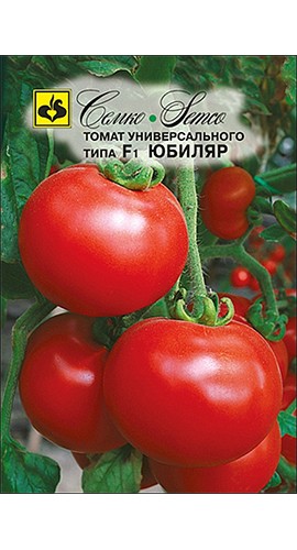 Гибрид Юбиляр раннеспелый, детерминантный. От всходов до первого сбора 95-97 дней. Растение компактное, среднеоблиственное. Плод плоскоокруглый, тёмнокрасный, многокамерный, массой 170-220 г, гладкий, плотный, без зелёного пятна у плодоножки. Товарность и транспортабельность высокие, плоды лёжкие. Вкусовые качества отличные. Содержание сухого вещества 5,3-5,6%, общего сахара 2,9-3,4%, витамина С 24-27 мг %. Засухоустойчивый, хорошо переносит высокие температуры. Гибрид устойчив к вирусу томатной мозаики, фузариозному увяданию, альтернариозу и вершинной гнили плодов. Используется для свежего потребления и производства томатопродуктов. Рекомендуется для открытого грунта и плёночных теплиц. Схема высадки 70x30 см. Урожайность F1 Юбиляр свыше 11 кг/м2. Посвящен 20-летию Семко.