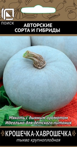 Отличные вкусовые качества. Вид - крупноплодная. Среднепоздний сорт. Период от восходов до полного созревания плодов 108-118 дней. Плод округлый, гладкий, серой окраски. сегменты слабо выражены. Масса 3-4 кг. Мякоть ярко-оранжевая, толстая, хрустящая, сладкая, с дынным ароматом. Отличается хорошей транспортабельностью, лежкостью (90-100 дней), устойчивостью к мучнистой росе. Столовое назначение