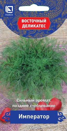 Растение компактное, кустовое, с наличием прикорневых розеток у основания стебля. Позднеспелый сорт. Период от всходов до срезки на зелень 55-60 дней. Стебель темно-зеленый с восковым налетом, сильнооблиственный, междоузлия укорочены. Лист длинный, темно-зеленый, сильнорассеченный, со слабым восковым налетом. Масса одного растения при уборке на зелень 20-25 г, на специи 50-55 г. Ароматичность сильная. Позднее стеблевание. Отрастает после срезки.